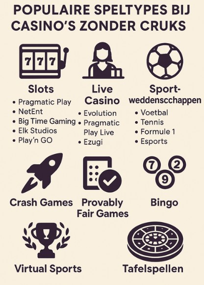 Veel casino’s zonder Cruks combineren hun platform met een volwaardig sportsbook met duizenden wedstrijden per dag.